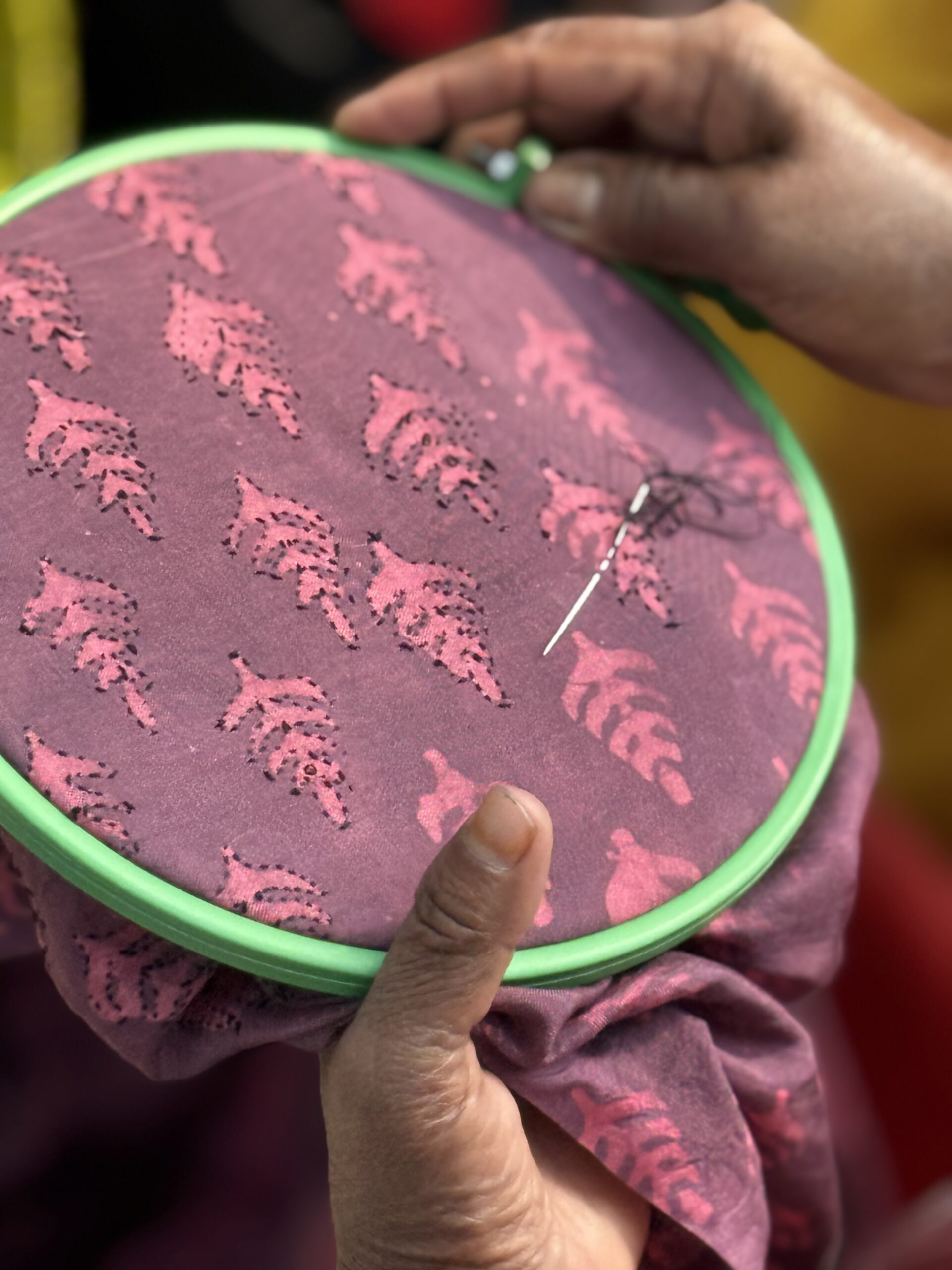 A handcrafted Lilac silk Kantha kurti set, adorned with refined hand embroidery, blending radiant color, artisanal heritage, and timeless elegance.