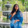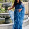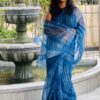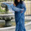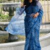 Shibori-dyed indigo maslin saree, soft and breathable, fusing comfort with traditional artistry. Includes blouse piece.